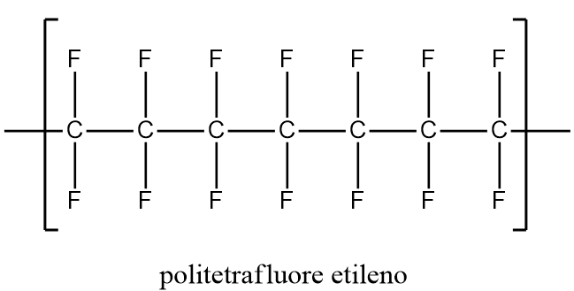 Teflon é o nome comercial. Quimicamente, este polímero se chama politetrafluoretileno (PTFE), ou seja, seu monômero é uma molécula de etileno onde os quatro átomos de hidrogênio são substituídos por átomos de flúor.