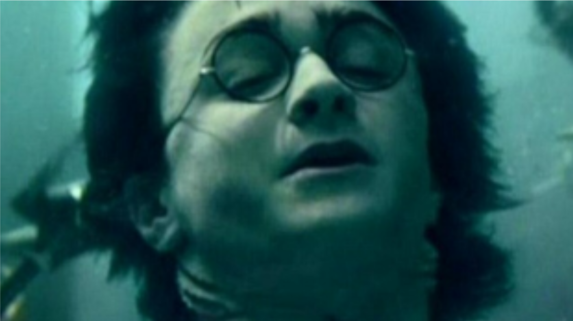 rosto de Harry em baixo da água, evidenciando as brânquias provenientes do guelricho