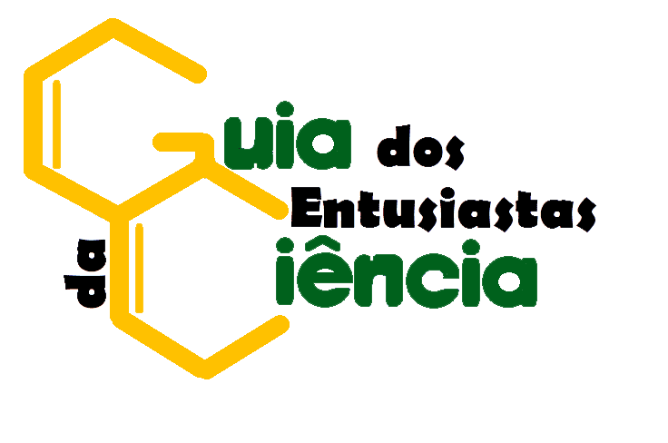 #acessibilidade Logo do Guia dos Entusiastas da Ciência. Nome escrito nas cores amarela, verde e preto. As iniciais G e C são na verdade anéis aromáticos estilizados para formarem letras em amarelo.