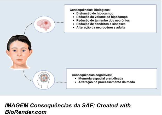 #acessibilidade: Ilustração das consequências biológicas e cognitivas da SAF.